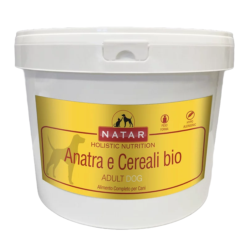 Realizzato con anatra, carne ricca di ferro ed aminoacidi a sostegno del tessuto muscolare, è arricchito con riso integrale biologico, altamente digeribile, e orzo biologico, fonte naturale di minerali.Tutti i prodotti Natar sono Human Grade